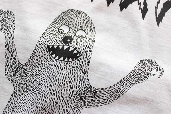 両手を広げた少し間抜けなモンスターがプリントされています。